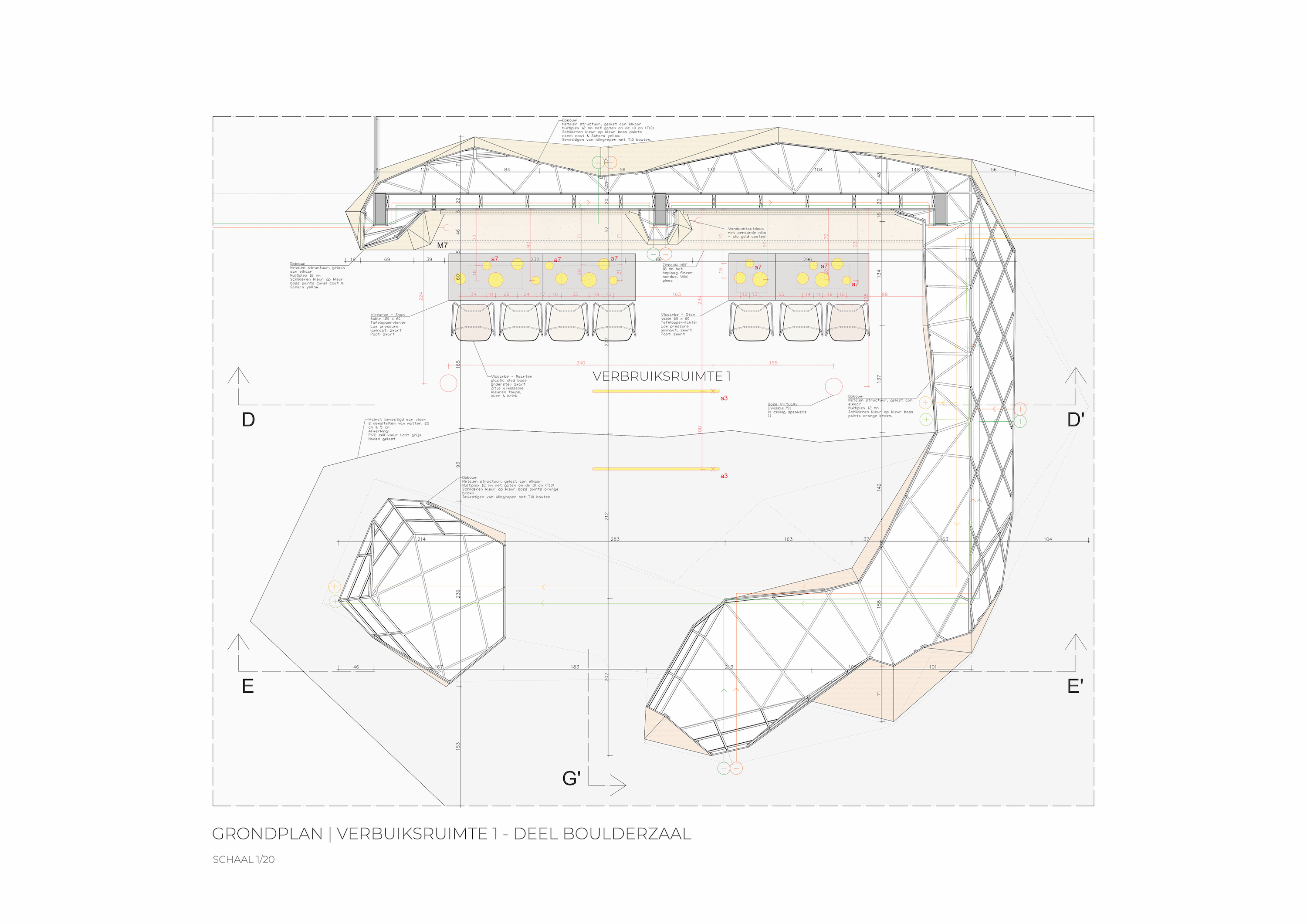 Eenmaal in het pand zie je meteen mensen klimmen door de positie van de klim put. Aan de linkerkant vindt je het onthaal die ook dienst doet als bar. De bijhorende lounge kan gebruikt worden als wachtruimte.