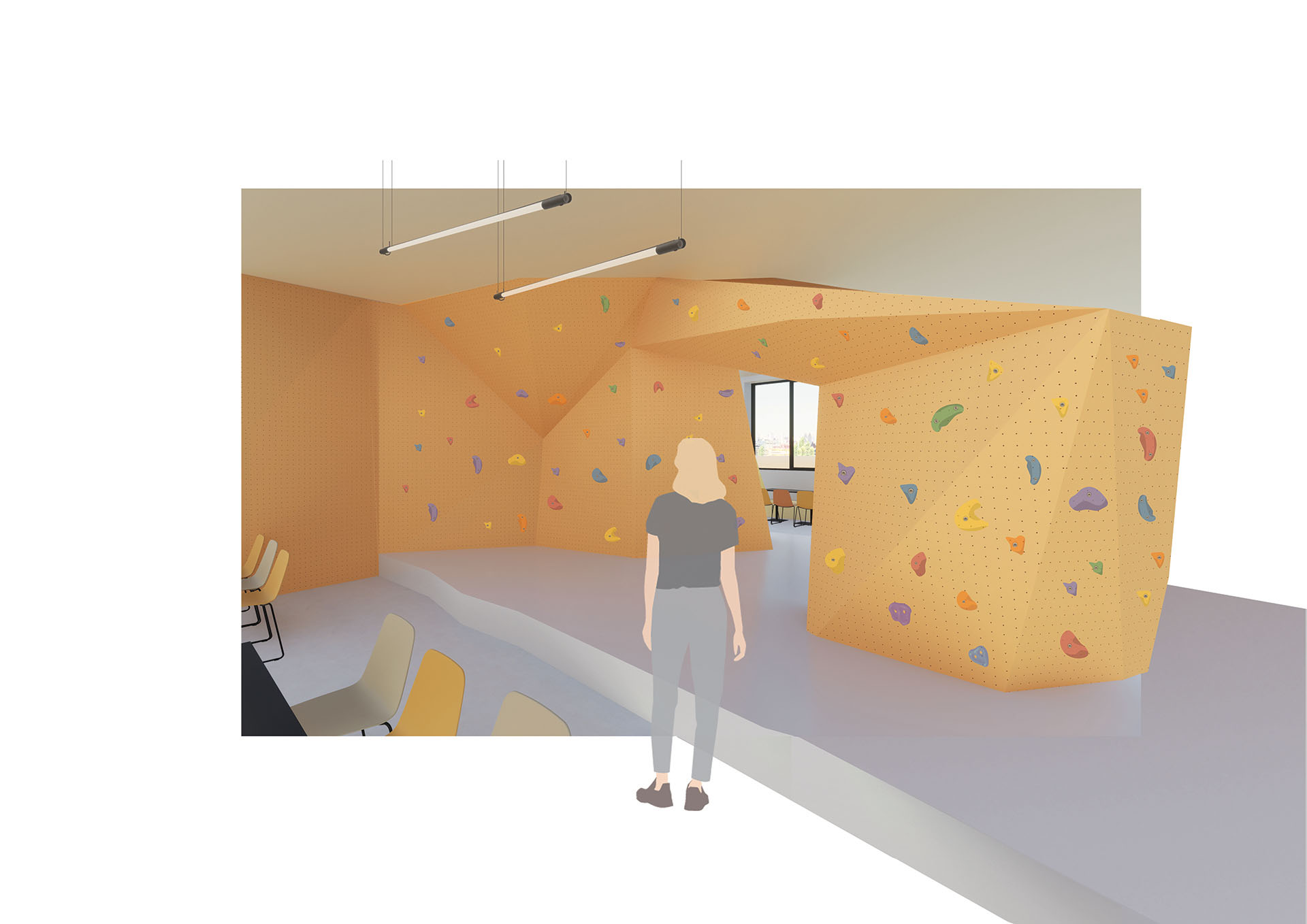 Er is een klein gedeelte voor kinderen met bijhorende verbruiksruimte. Ouders kunnen kijken hoe hun kinderen aan het klimmen zijn. De verbruiksruimte kan ook gebruikt worden door klimmers die even aan een pauze toe zijn.