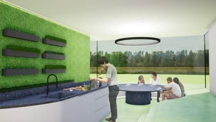 Opdracht : Ontwerp een keuken, een ruimte waar je je meer bewust wordt van wat er is, de grondstoffen, en waar alles vandaan komt. Zorgt dat deze plek mee doet nadenken over wat we eten, klaar maken, en waar dat vandaan komt. Zorgt dat deze plek gebruikt kan worden als openbare ruimte.