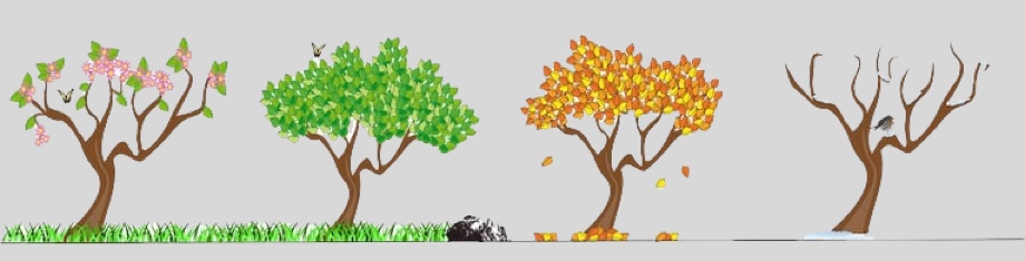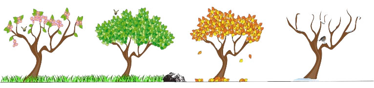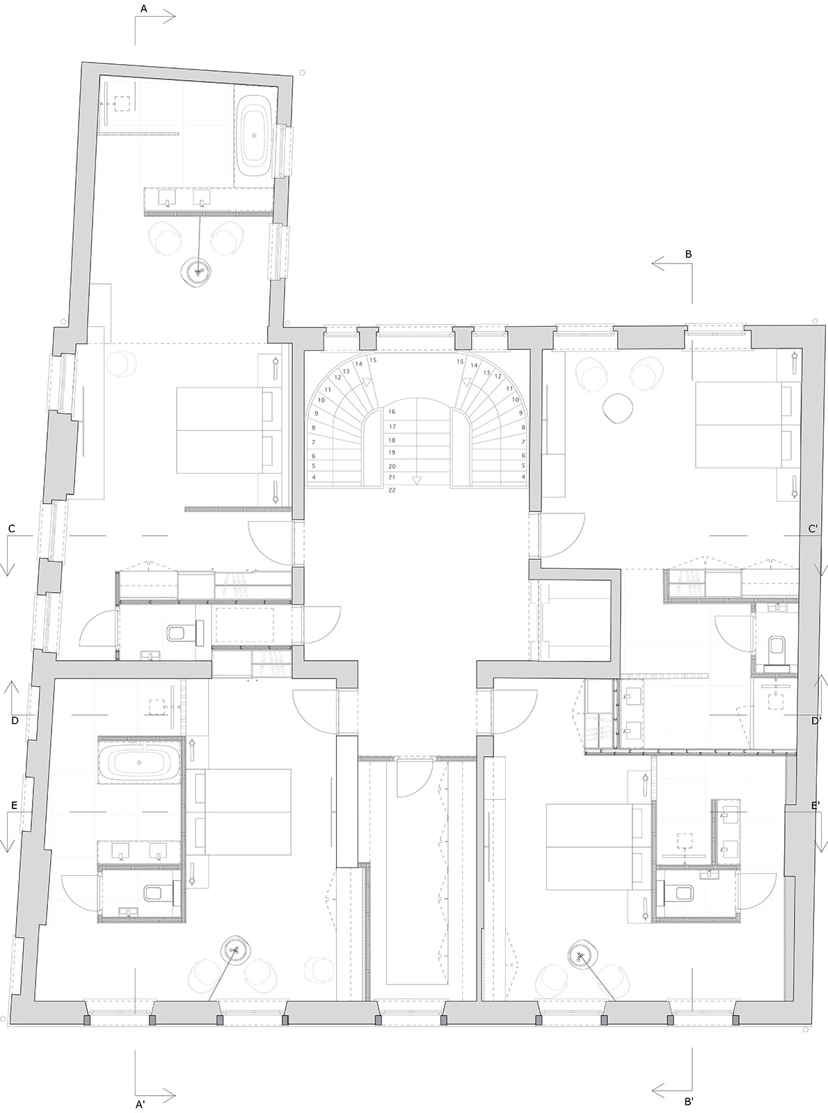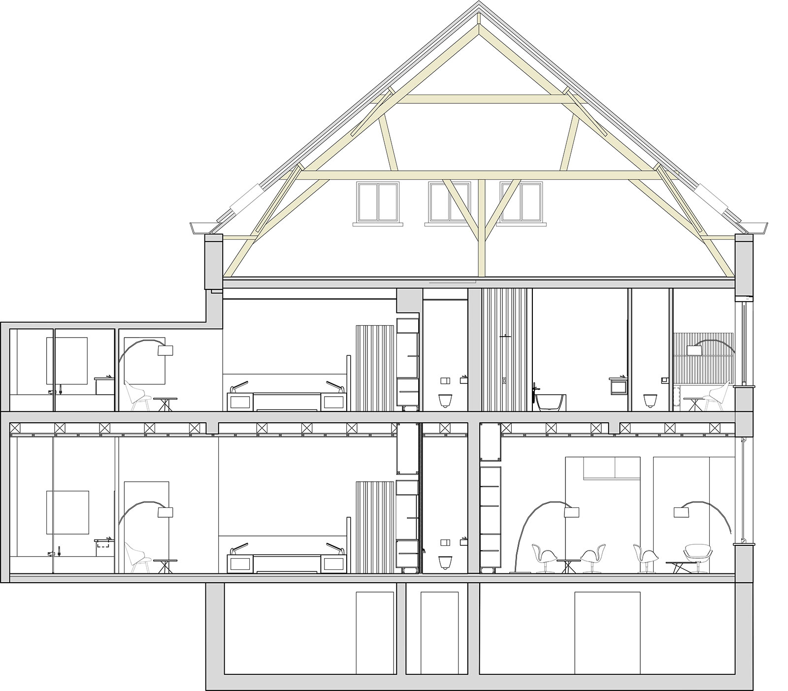 Elke kamer is uitgerust met een eigen wc en badkamer, dit in het thema van een bepaald seizoen. De kamer op de benedenverdieping krijgt de kleuren van een boom met groene bladeren. De overige kamers krijgen de kleuren rood, geel, blauw en donker rood.