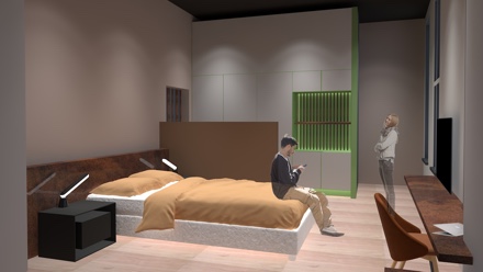 Ontwerp de inrichting van een bed and breakfast in het voormalige gemeentehuis van Sleidinge. Alle belangrijke functies eigen aan de uitbating van deze bed and breakfast dienen ontworpen te worden. De bed and breakfast dient te voldoen aan het luxe label dat garant staat voor luxe afwerking en hedendaags comfort. Met respect voor de architectuur van dit karakteristiek pand zal er een commerciƫle semi-private functie ondergebracht worden op de begane grond en de eerste verdieping.