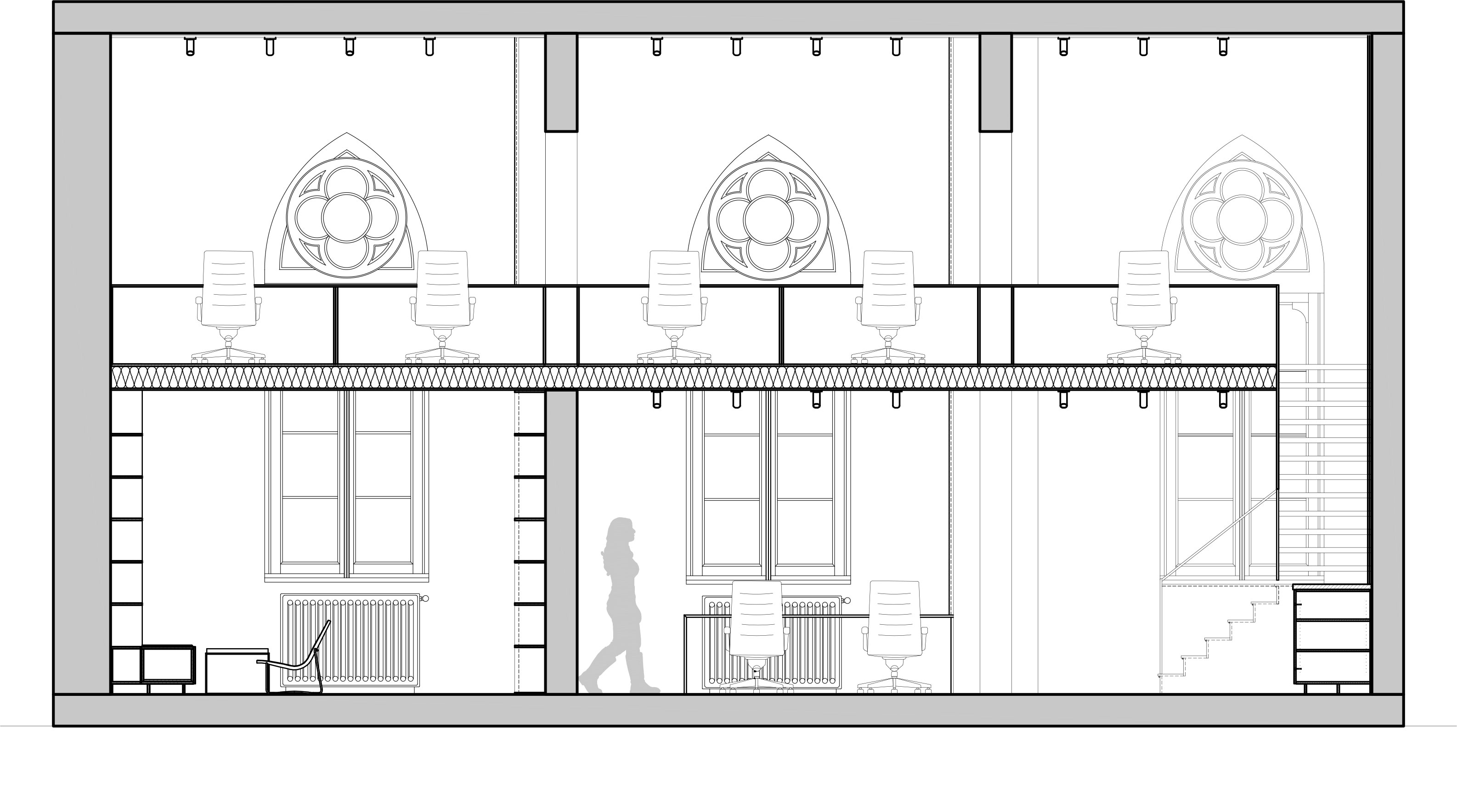 Er moet voldoende werkruimte voorzien worden voor zowel boeken als een computer te plaatsen, waarbij aanpasbare verlichting een must is. Eveneens wordt er een vergaderruimte en een zithoek voor kleine besprekingen voorzien.